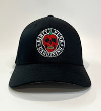 Embroidered graphic 6 panel, unstructured, buckle closure.
